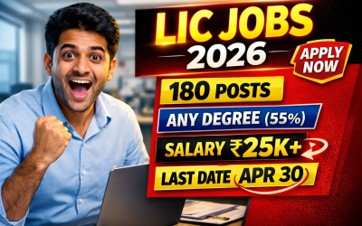 LIC హౌసింగ్ ఫైనాన్స్ లిమిటెడ్ సంస్థ LIC Recruitment 2026 దేశవ్యాప్తంగా జూనియర్ అసిస్టెంట్ పోస్టుల భర్తీకి నోటిఫికేషన్ విడుదల చేసింది. మొత్తం 180 ఖాళీలు ఉన్నాయి. డిగ్రీ పూర్తి చేసిన అభ్యర్థులు ఈ అవకాశాన్ని వినియోగించుకోవచ్చు. ఎంపిక ప్రక్రియలో ఆన్లైన్ పరీక్ష మరియు ఇంటర్వ్యూ ఉంటాయి. ఈ ఉద్యోగం బ్యాంకింగ్/ఫైనాన్స్ రంగంలో కెరీర్ ప్రారంభించాలనుకునే వారికి మంచి అవకాశం. ఉద్యోగ వివరాలు (Job Overview) – LIC Recruitment 2026 కొన్ని ముఖ్య రాష్ట్రాల ఖాళీలు:…
