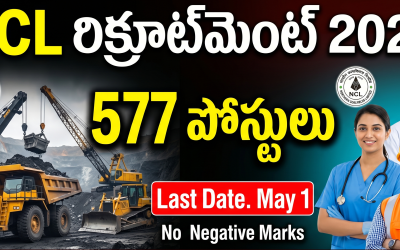 Northern Coalfields Limited (NCL) NCL Recruitment 2026 సంస్థ 2026 సంవత్సరానికి భారీ స్థాయిలో రిక్రూట్మెంట్ నోటిఫికేషన్ విడుదల చేసింది. ఈ రిక్రూట్మెంట్ ద్వారా మొత్తం 577 పోస్టులను భర్తీ చేయనున్నారు. ఈ నోటిఫికేషన్ ముఖ్యంగా 10వ తరగతి, 12వ తరగతి, డిప్లొమా, B.Sc Nursing వంటి అర్హతలు కలిగిన అభ్యర్థులకు మంచి అవకాశంగా చెప్పవచ్చు. 📅 ముఖ్యమైన తేదీలు – NCL Recruitment 2026 👉 చివరి తేదీకి ముందు అప్లై చేయడం చాలా…